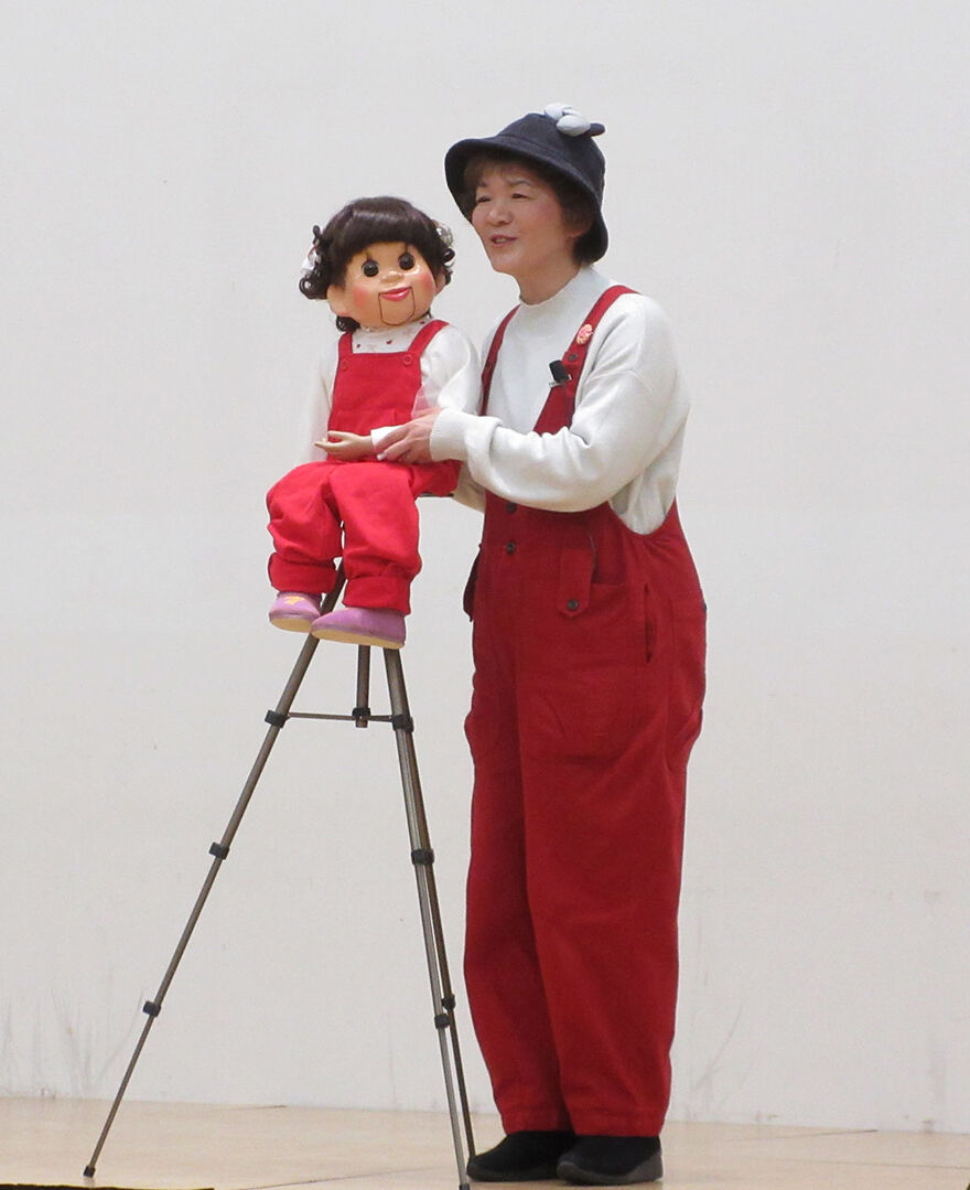 また、腹話術やバルーンアートを通じて、施設や保育園などで笑顔を届けている個人ボランティアの草野さんからは、腹話術人形「いちごちゃん」とともに、活動を始めたきっかけや、今後の目標についてお話しいただきました。
